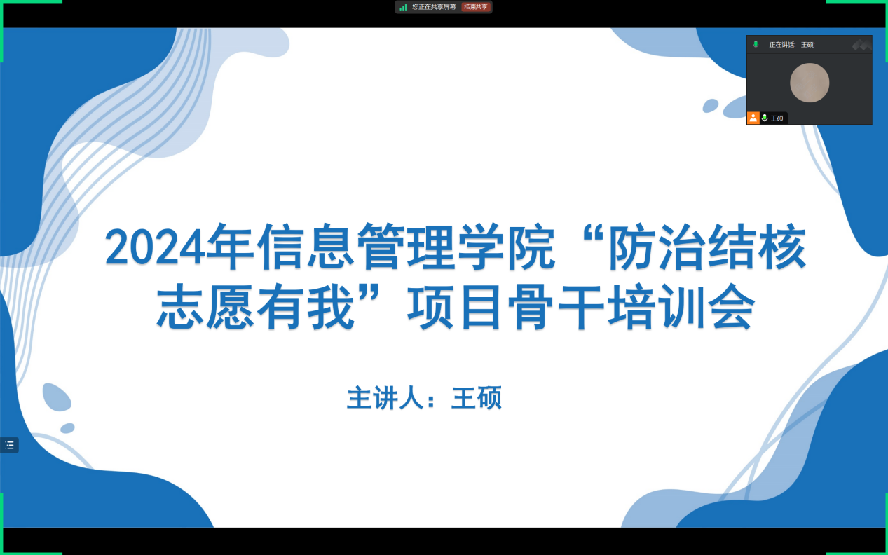 本次培训会由学院团委副书记、2022级思想政治辅导员王硕老师主讲,华体会登陆入口青年志愿者协会结核病防治项目骨干参加此次培训。培训会伊始,王硕老师强调了结核病作为一种常见的传染病,对社会和个人的健康构成了严重威胁。因此,加强结核病防治工作,增强公众的防病意识,是每一位志愿者义不容辞的责任。