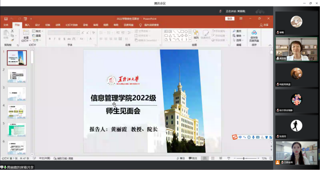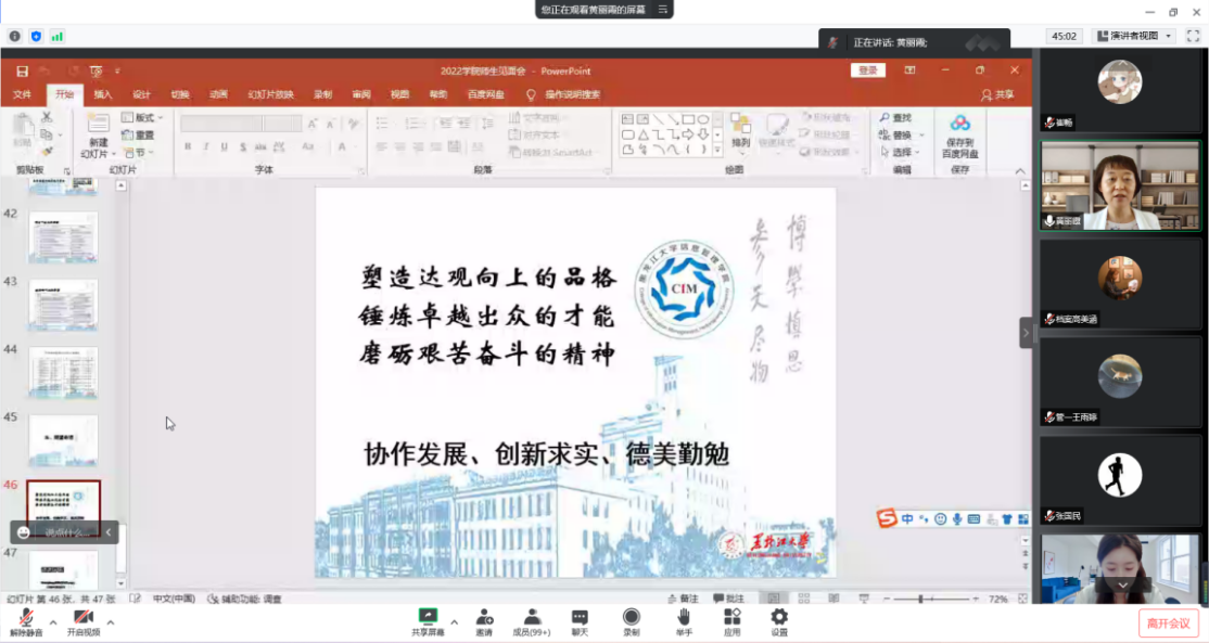 青春逢盛世,奋斗正当时;金秋开学月,扬帆再起航。2022年9月9日上午10点,华体会登陆入口于线上召开2022级新生开学典礼暨师生见面会。本次会议由华体会登陆入口团委副书记,2022级新生辅导员王硕老师主持,华体会登陆入口院长黄丽霞老师,党委书记马海群老师,副院长周丽霞老师、任越老师,华体会登陆入口全体教师以及2022级全体新生参加本次活动。
