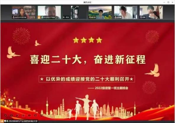 会议之初,新生班主任们对于本次班会的主题进行了详细的讲解,通过观看相关视频等方式为同学们讲解了党的百年奋斗历史、优秀青年群体的事迹等内容。身为新时代青年,要坚定为社会主义理想艰苦奋斗的信念,继续跟党走,以青春朝气接过前辈的接力棒,不断加深对党的历史发展进程的理解和认识。用实际行动迎接党的二十大的胜利召开。随后,各班级的同学们积极分享自身的学习感悟,他们纷纷表示将以实际行动展现爱国之志、报国之心,努力学好知识,掌握本领,为祖国奉献美好青春。