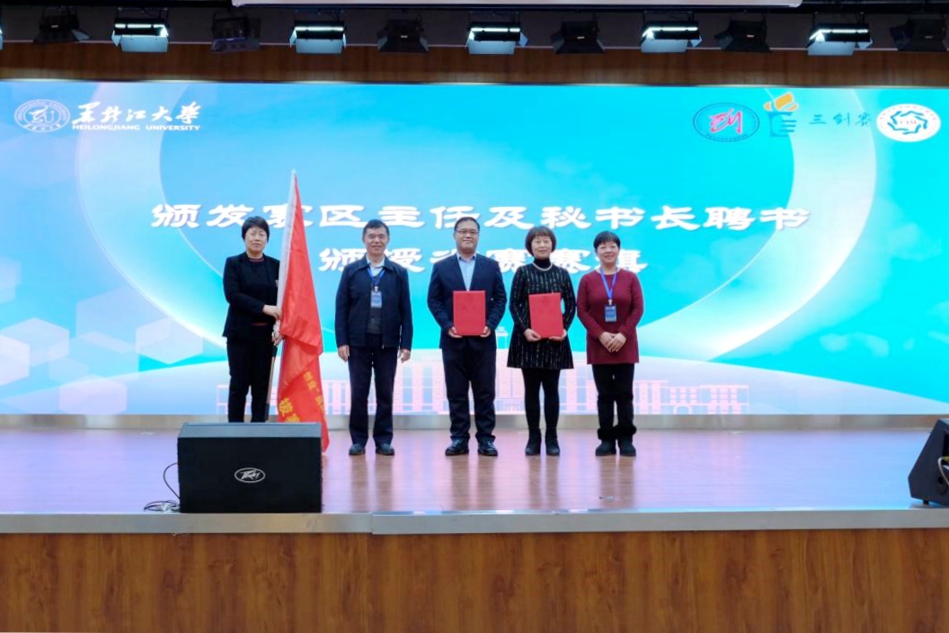 启动仪式后,教育部电子商务专业虚拟教研室负责人李琪教授与教务处林靖副处长共同参加黑龙江大学电子商务虚拟教研室基地授牌仪式,第十八个教育部电子商务虚拟教研室建设基地落户黑龙江大学。